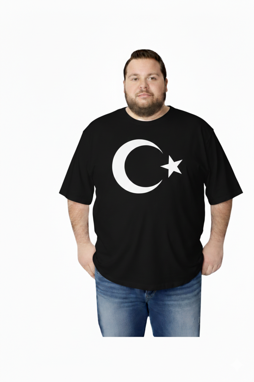 Erkek Büyük Beden Kısa Kollu Ay Yıldızlı Tişört 3XL 4XL 5XL 6XL 7XL 8XL 9XL